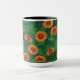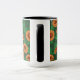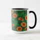 Mug Fleurs Zinnia orange, feuilles verts sur vert fonc