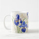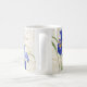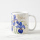 Cette élégante tasse florale présente de l'iris bleu sur un arrière - plan blanc avec un damas faux or et un script manuscrit. Personnaliser avec un nom. Conçu par un artiste mondialement connu ©Tim Coffey.
