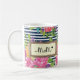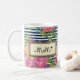 Le motif floral coloré présente des fleurs éclatantes et des lettres blanches avec un coeur, dressées contre des rayures audacieuses. Parfait pour la fête des mères.