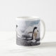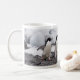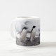 Trois pingouins adorables d'Adele ont photographié en Antarctique semblent courir à travers cette tasse de café.