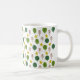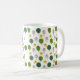 Cette tasse a un design scandinave à répétition d'une forêt dans les tons marron et vert et jaune étoiles.