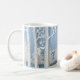 Décor de découpe de papier frappant en bleu et blanc avec des arbres, des écureuils et des flocons de neige.