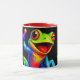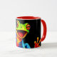 This visual can be moved or resized freely on another model of your choice (man, woman, child...). This mug displays a bright tropical frog on a black background, with a big smile and a dynamic posture. This fun visual brings a lively and joyful touch to your coffee moments. Ideal for fans of fun and original design.