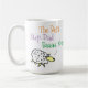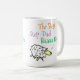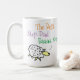 Mug pour le meilleur Step Papa. Drôle dessin animé d'un mouton au sommet d'une colline. Le mouton dit "Best Step Papa Baaa None". Conception répétée des deux côtés