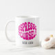 Funny Saying Modern Espresso Yourself Retro Name Coffee Mug with Retro Hot Pink Groovy Font Lettering.