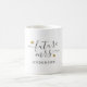Cadeau personnalisé de mariage et de fête de mariage sur un mug à café avec la mention "future Mme" et votre nom de famille personnalisé en calligraphie moderne et stylisée avec des coeurs dorés.