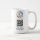 Partagez n'importe quel site Web avec un code QR personnalisé et le logo "Scan Me" grande tasse de café en céramique. Pour créer votre propre code QR à l'aide du générateur, tapez simplement l'URL du site Web dans le modèle. Tout le libellé est simple à personnaliser ou à supprimer, et les couleurs, les polices et la transparence du logo sont faciles à modifier avec l'outil de design Zazzle. Promouvoir une entreprise à des clients potentiels avec un style moderne et professionnel. Le code scannable permet aux clients de trouver facilement le site de votre entreprise en ligne et de se connecter à votre marketing Internet et à votre réseau de médias sociaux. Le design de base en noir et blanc comprend une typographie minimaliste moderne, votre logo et un code QR généré sur mesure. Disponibles en petites quantités et en vrac pour répondre à vos objectifs publicitaires uniques, ces tasses à café font de belles idées cadeaux pour les employés ou un échange promotionnel pour des conférences et des salons. La disposition polyvalente est adaptée aux entrepreneurs ainsi qu'aux grandes entreprises et présente la marque d'entreprise avec une apparence classique propre et élégante.