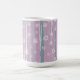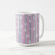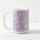 Sip in rustic charm with the Gingham Orchard Mug. This cozy and whimsical design features vertical brushstroke stripes in soft shades of pink, gray, and blue, layered with white gingham silhouettes of apples and flowers. The combination of painterly textures and classic gingham patterns creates a nostalgic yet modern feel — perfect for mornings, study breaks, or gifting.