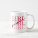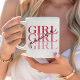 Ce design de tasse habilitant comporte le mot "GIRL" répété trois fois dans un dégradé rose vif, créant un effet superposé et accrocheur. Le mot "puissance" est élégamment scénarisé en noir cursif à travers l'audacieux texte "FILLE", ajoutant un contraste élégant qui met en évidence la force et la confiance. Parfait pour votre café ou thé du matin, cette tasse est un rappel quotidien du pouvoir et de la positivité des filles. Que ce soit à la maison ou au bureau, c’est une déclaration qui inspire et motive!