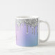Glam moderne Parties scintillant argent gouttes Girly Feminine Luxury Monogramme Script Nom Mug