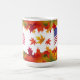 Un design d'automne très coloré avec feuille et citrouille, et la bannière étoilée vole fièrement. Les lettres USA apparaissent à l'arrière de la tasse.