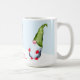 Trois nains de Noël stupides dans un cadre enneigé. Mug dit "GNOEL"
