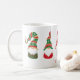 Cute et joyeuse tasse de Noël personnalisée avec cinq mignons gnomes nordiques avec des casquettes et des tuniques de style scandinave de saison rouge et vert. Ajoutez votre nom ou vos noms dans une amusante typographie rouge.