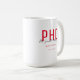 Une grande tasse de doctorat qui indique le nom du diplômé, le domaine d’études et la date de fin d’études. La tasse inclut le nom dans une police de script manuscrite et une conception rouge et noire. C’est un grand plaisir pour un gardien ou une fête. Ajoutez simplement les infos du diplômé, ajoutez cette tasse à votre panier, et félicitations pour cette étape majeure ! Graduate Keepsaké Rouge Nom noir PhD Grand café Mug Conception de jour férié | ©Melissa Patton - Designer