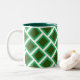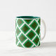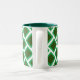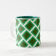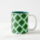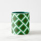 Square tilted at 45 degrees, has dark green centre and light green outline. Each brick is separated by blank/white space (grout).