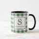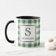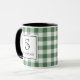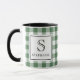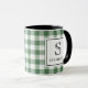 Mug Green & White Plaid Black Typography Monogram Name