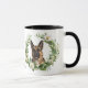 Cette tasse présente le portrait aquarelle de l'artiste d'un beau chien berger allemand dans une marguerite blanche et une couronne de feuilles vertes. L'image est imprimée deux fois sur la tasse, avec votre nom ou monogramme en bas entre les images.