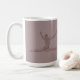 Gymnast leaping through the air. Photograph is altered to look like terra cotta in bas-relief. Image is duplicated on each side of mug. Colour is a pinkish purple, or mauve.