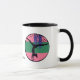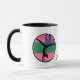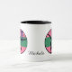 Parfait pour la fille de gymnastique, cette tasse présente un rendu graphique abstrait d'un gymnaste dans une pose de support à main. L'image circulaire est en noir, vert turquoise et rose, avec votre nom ou autre texte personnalisé en noir au centre. L'image est répétée du côté opposé de la tasse. *L'image clipart utilisée dans cette conception est protégée par le droit d'auteur de Encore Software, Inc., qui permet son utilisation à ses concédants de licence. Tous droits réservés.