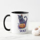 Chat noir à l'aquarelle mignonne avec du texte citrouille et drôle. Le texte peut facilement être personnalisé. C'est l'heure d'Halloween et de Chill alors soyez douillets et profitez d'une tasse de café, de thé ou de cacao dans cette tasse éffrayante !