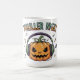 Un peu éffrayant, un peu épicé, un peu mignon... Cette tasse sur le thème de l'Halloween avec le texte "Thriller Night" avec une tête de citrouille orange portant un casque est idéal pour les amateurs de musique et d'horreur.