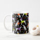 Les chiens dalmatiens d'Halloween avec des manteaux tachetés noirs et blancs tiennent des citrouilles de ruse ou de traitement, portent des casquettes sorciers et des chandails avec des chauves-souris éparpillées, des pattes et des os de chien.