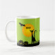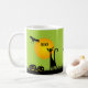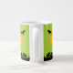 Les chauves-souris dans le ciel volent au-dessus d'un chat noir aux yeux verts et levant une lanterne de valet sur cette tasse à café Halloween. CORRESPONDANCE d'objets dans notre collection.