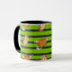 Cette tasse présente des cercueils d'aquarelle et des lanternes de jack o' avec des fantômes qui sortent sur un amusant arrière - plan rayé vert et gris foncé. Idéal pour le café de saison Éffrayante ou le thé chaud!