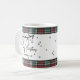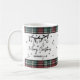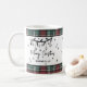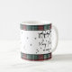A red and green tartan plaid borders the top and bottom edges, adding a warm and festive touch to the design. Perfect for sipping your morning coffee, cocoa, or tea during the holidays. All text, fonts, and colors can be customized to match your personal style.