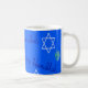 Cette tasse a un design Hanoukka de dreidel, Star of David, et "Happy Hanoukka" sur un arrière - plan bleu. Idéal pour la saison.