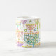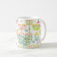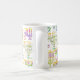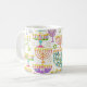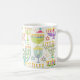 Cette tasse à café de vacances personnalisée dispose d'un motif chic d'or, menorah vert et violet et l'étoile d'or de David sur un arrière - plan blanc. Conçu par un artiste de renommée mondiale ©Tim Coffey.