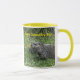 Photo of a groundhog in the grass, is printed on both sides of custom mugs. The text says, Happy Groundhog Day, and is written in yellow. The text can be customized with your own message' be sure to customize both sides. Thank you for shopping at CherylsArtPhotos on Zazzle.