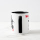 Un texte Bête et une image en silhouette noire d'un zombie sur un côté d'une tasse. Un texte Beauté et une image silhouette d'une belle jeune femme avec une mitrailleuse dans les mains de l'autre côté de la tasse. Texte noir Happy Halloween au milieu d'une tasse. Image rouge et noire d'une vapeur de café ou peut-être d'une fumée de pistolet sur le texte du milieu. Amusante tasse à café Halloween personnalisable unique en son genre pour n'importe qui. Vous pouvez tout changer. N'oubliez pas de choisir un autre style et une autre couleur de la tasse. Utilisez le bouton Personnaliser pour ajuster la conception à vos besoins. Amuse-toi bien ! Joyeux Halloween !