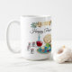 Happy Passover souhaite un texte "Happy Passover" en hébreu et "Souhaitez-vous et ceux que vous aimez la paix, la santé et le bonheur, à Pâque et toujours." Cadre floral vintage, Matzah - Pain traditionnel juif pour la cérémonie du Seder de Pâque, assiette de Pesach. Bouteille de vin rouge et quatre vinaigrettes, "Kiddush cup", livre de prières. Accueil & Vie > Cuisine & Restauration > Boissons > Mugs & Tasses. Conception avec modèle texte. Personnalisez-les en ajoutant un nom ou un texte de voeux.