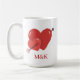 happy valentine's day cute love hearts monogram coffee mug , hearts pierced by arrow valentine's day graphics, cute custom gifts for women, couples girlfriend, wife.