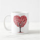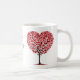 Two whimsical trees with red heart leaves decorate this coffee mug. Between them is text "Happy Valentine's Day" which can be changed. AI assisted graphic purchased with commercial use. Artwork: RedHeronLighthouse