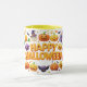 This Halloween mug is the ideal accessory to enjoy the season with a touch of humor. Filled with pumpkins with hilariously scary expressions, mischievous bats, and witch hats, its design combines spooky with fun. Vibrant green, orange, and purple colors give it a festive and cheerful style, perfect for Halloween lovers looking to add a unique touch to their favorite moments.