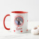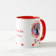 Ce design moderne et design de tasse à café photo personnalisée de la Saint-Valentin comprend des coeurs rouges mignons et des calligraphies de script "Love" et "Hug me, Kiss me and Love me" dans le coeur avec une photo de couple. Téléchargez votre photo et changez le texte, les polices et les couleurs pour en faire votre cadeau romantique de la Saint-Valentin. Parfait pour une petite amie, un petit ami, un mari, une femme ou un cadeau spécial ou anniversaire.