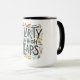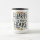 Whimsical et ludique : Le texte "Hilarity in High Heaps" est écrit dans un style coloré et écrit à la main avec des doodles et accents fantaisistes. Le design est amusant et léger, et serait parfait pour la tasse d'un enfant