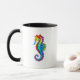 Artistiquement dessiné, lumineux, arc-en-ciel, cheval de mer polygonale sur arrière - plan blanc. Un tatouage brillant.