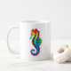 Artistiquement dessiné, lumineux, arc-en-ciel, cheval de mer polygonale sur arrière - plan blanc. Un tatouage brillant.