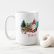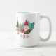 Ho, Ho, Ho, Père Noël de Noël assis à côté d'un arbre de Noël avec des cadeaux et des tasses.