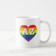 Cette tasse à café présente un coeur de fierté arc-en-ciel contenant les lettres majuscules gras et blanches AZ, l'abréviation officielle pour l'Arizona, l'État du Grand Canyon. Montrez vos vraies couleurs, soutenez l'égalité dans le mariage et célébrez le gay pride.
