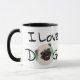 Mignonne tasse moderne avec carlin en passant par la lettre O en Chiens. Un coeur à motifs de pattes orne l'autre côté.