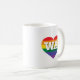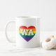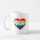 Cette tasse est ornée d'un coeur de fierté arc-en-ciel orné de lettres majuscules blanches et audacieuses WA, l'abréviation officielle de Washington, l'État à feuillage persistant. Montrez vos vraies couleurs, soutenez l'égalité dans le mariage et célébrez le gay pride.