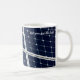 Vue rapprochée d'un panneau solaire pour produire de l'énergie écologique propre et renouvelable pour alimenter des lampadaires et d'autres appareils. Arrière - plan bleu profond et grille blanche. Tasse au café. Personnalisable . Vous pouvez modifier l'image et vous pouvez modifier ou supprimer deux textes modèles indépendamment : Powered by the Sun et Yes, you are the best.