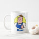 Fun Mug pour un Handyman, Caretaker ou Maintenance Worker qui a une image Handyman avec le nom. Des graphiques apparaissent de part et d'autre. Bouge-cadeau pour les travailleurs.