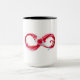 Infinity symbole of continuous stream of red pouring into glass glass glass on white background.