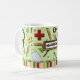 Mug d'infirmière personnalisé avec des fournitures de soins infirmiers et des fleurs. Modifier le texte pour ajouter un nom.