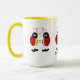 Lovebugs rouges tenant des mains devant un coeur rose dans un domaine blanc. La vue, la poignée, et la jante sont jaunes.